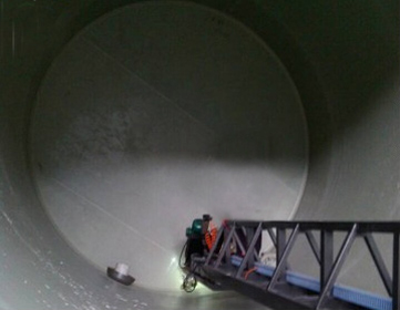內(nèi)部焊接是采用自動長臂擠出焊接工藝,是所有工序中最重要的一步。將與罐體性質(zhì)相同的全新PPH顆粒料熱熔在內(nèi)部焊縫處,與罐底、罐體成一體,原理與外部焊接相同,只是其設(shè)備不同。