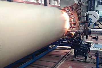 罐體是用螺旋纏繞設(shè)備擠出成罐體成型的工藝。系統(tǒng)采用將PP或PPH顆粒熱熔后擠出后再鋼制模具上纏繞成罐體的工藝。